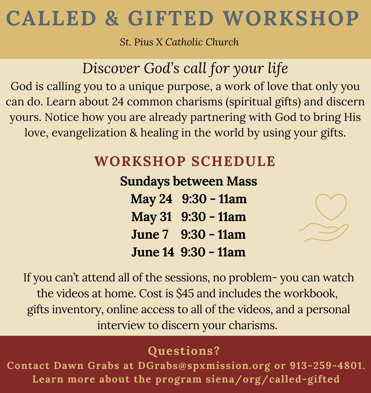 If you would like to volunteer in a Mass ministry, we need you! This includes hospitality, lector, eucharistic minister, altar server or liturgy of the word with children. If you would like to volunteer, please reach out to Dawn Grabs at dgrabs@spxmission.org.